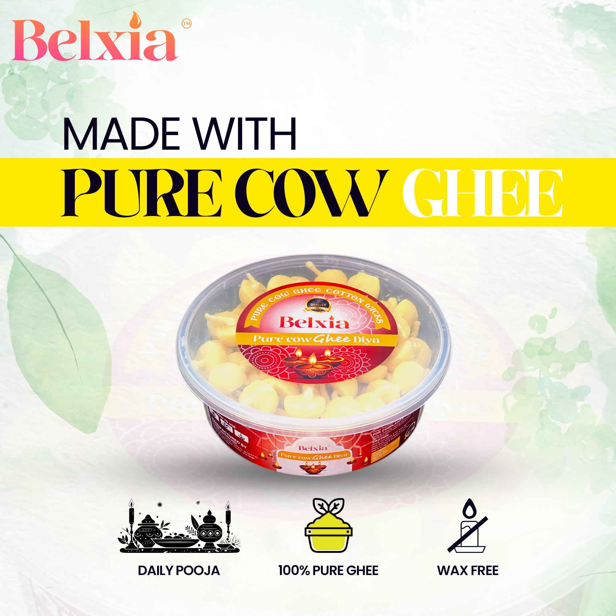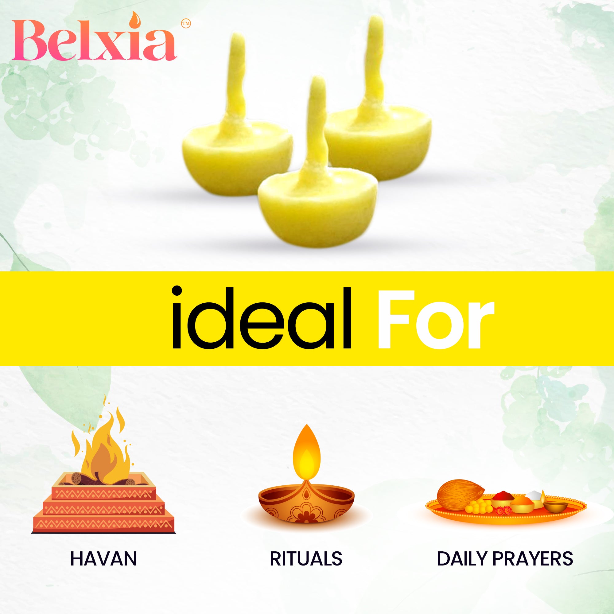 - EASY TO USE: Belxia Pure Cow Ghee Diya is ready to use Ghee Diya Batti that you can conveniently light in your home every day during Pooja and Aarti rituals in homes, office functions and temples.