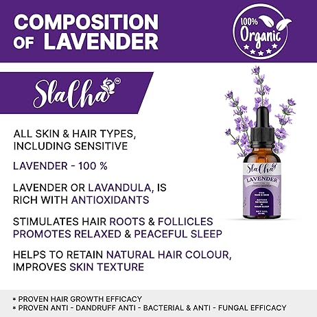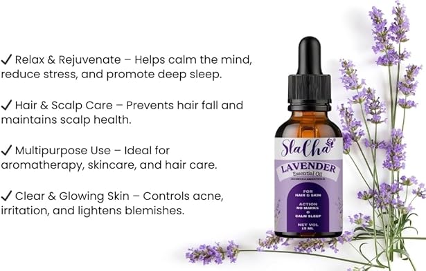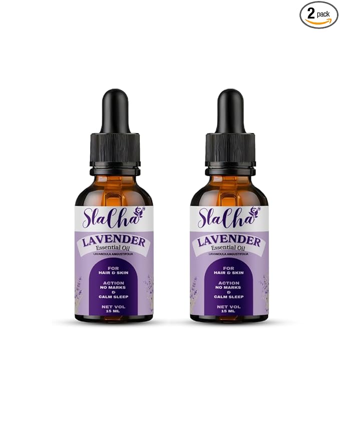 Slacha Lavender Essential Oil | 100% Pure & Natural | Clinically Tested | Steam Distilled | For Hair, Skin & Relaxation | 15ML (BUY 1 GET 1 FREE)
