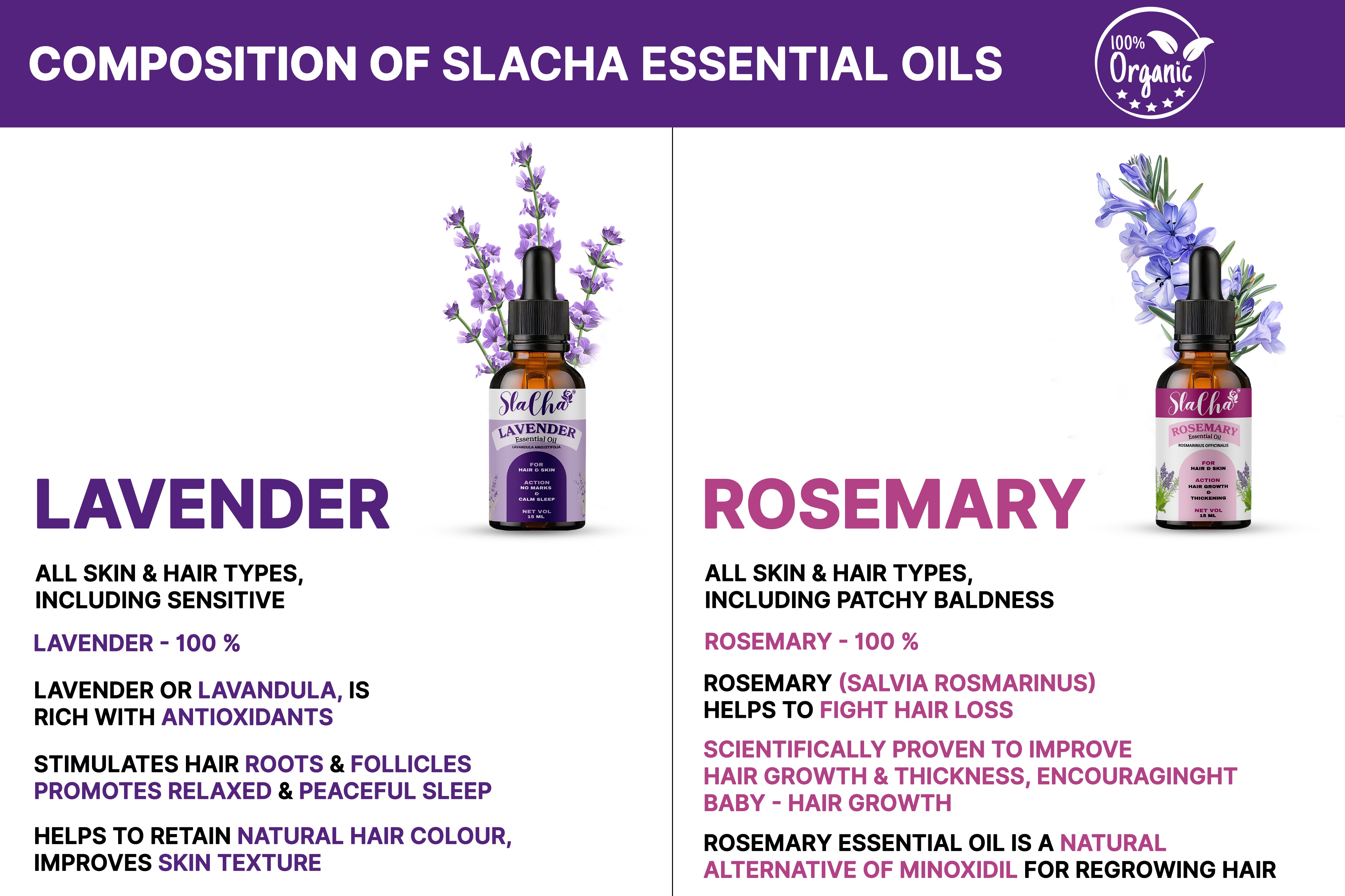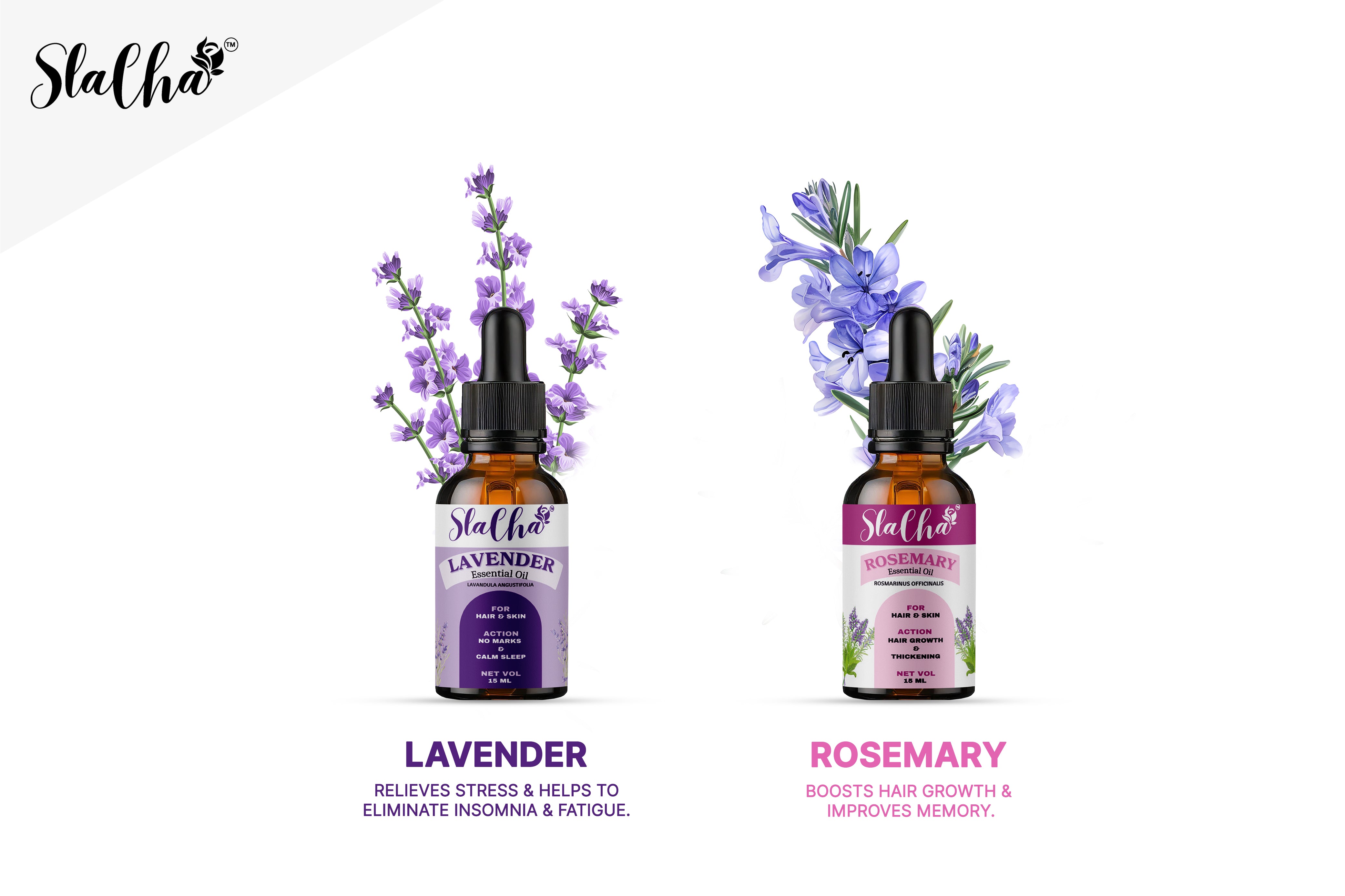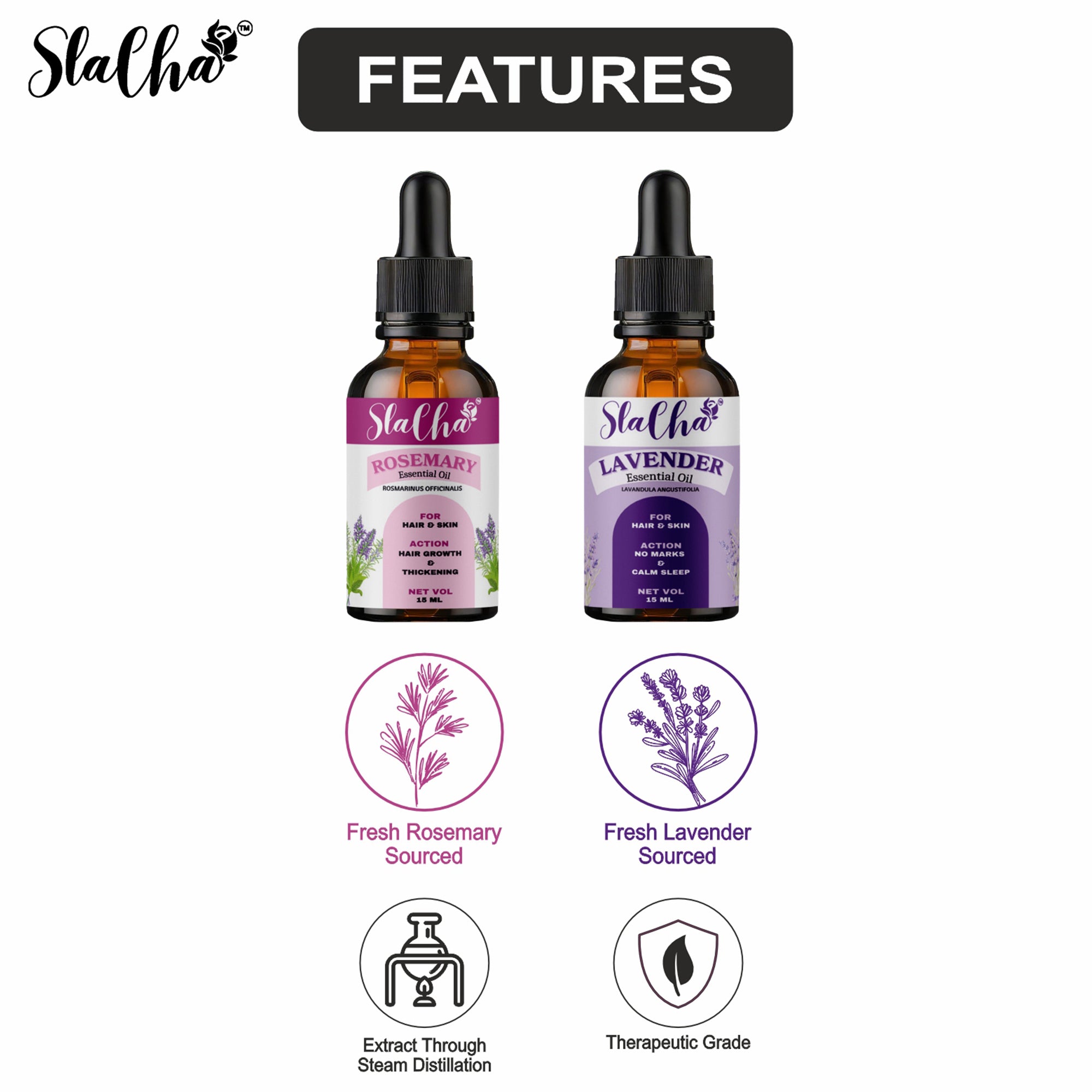 Slacha Lavender & Rosemary Essential Oil | 100% Pure & Natural | Steam Distilled | For Hair, Skin & Relaxation | 15ML (Pack of 2) (BUY 1 PACK GET 1 FREE)
