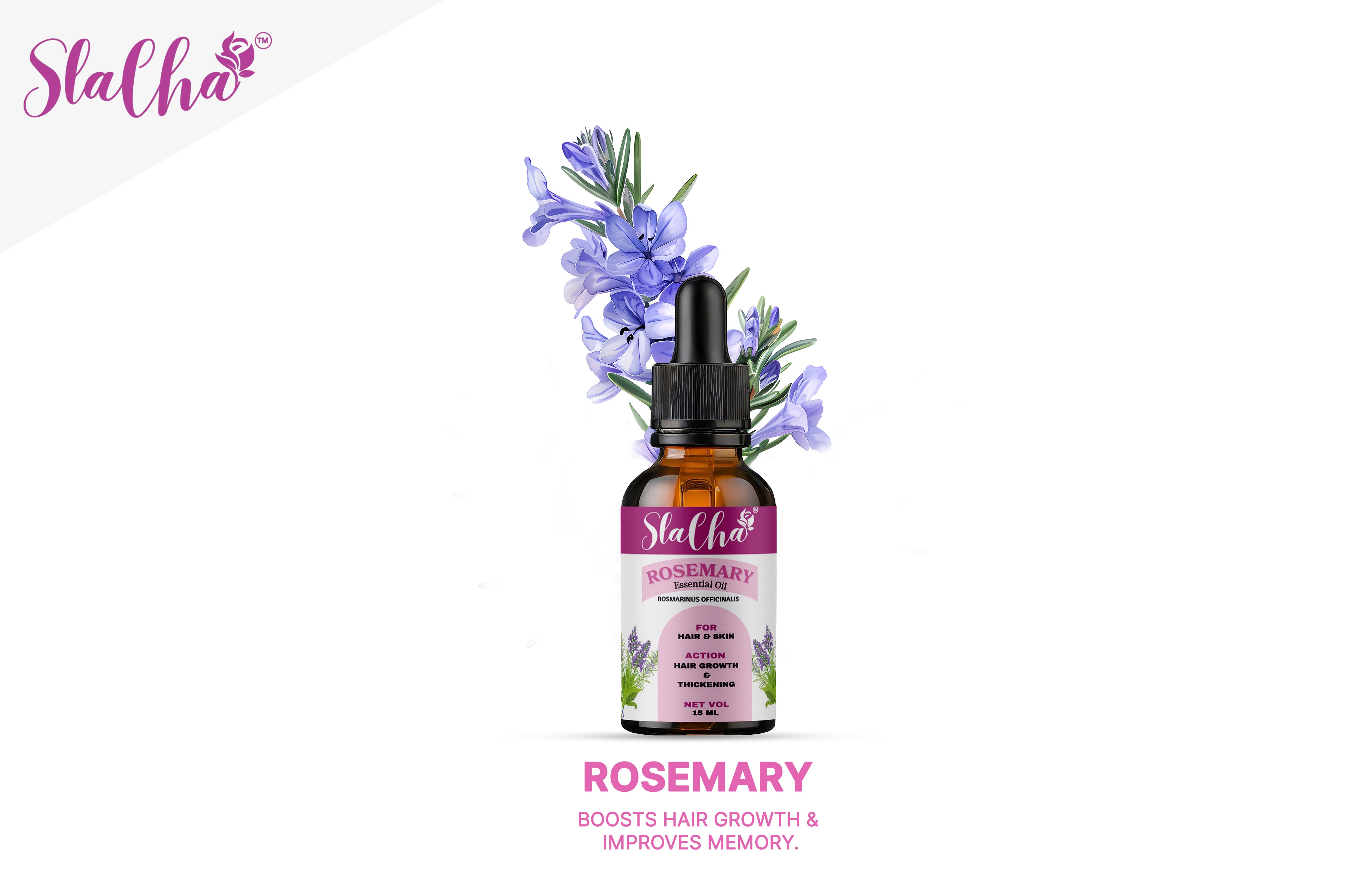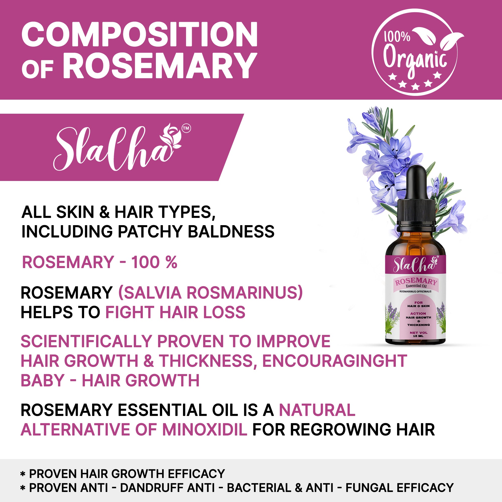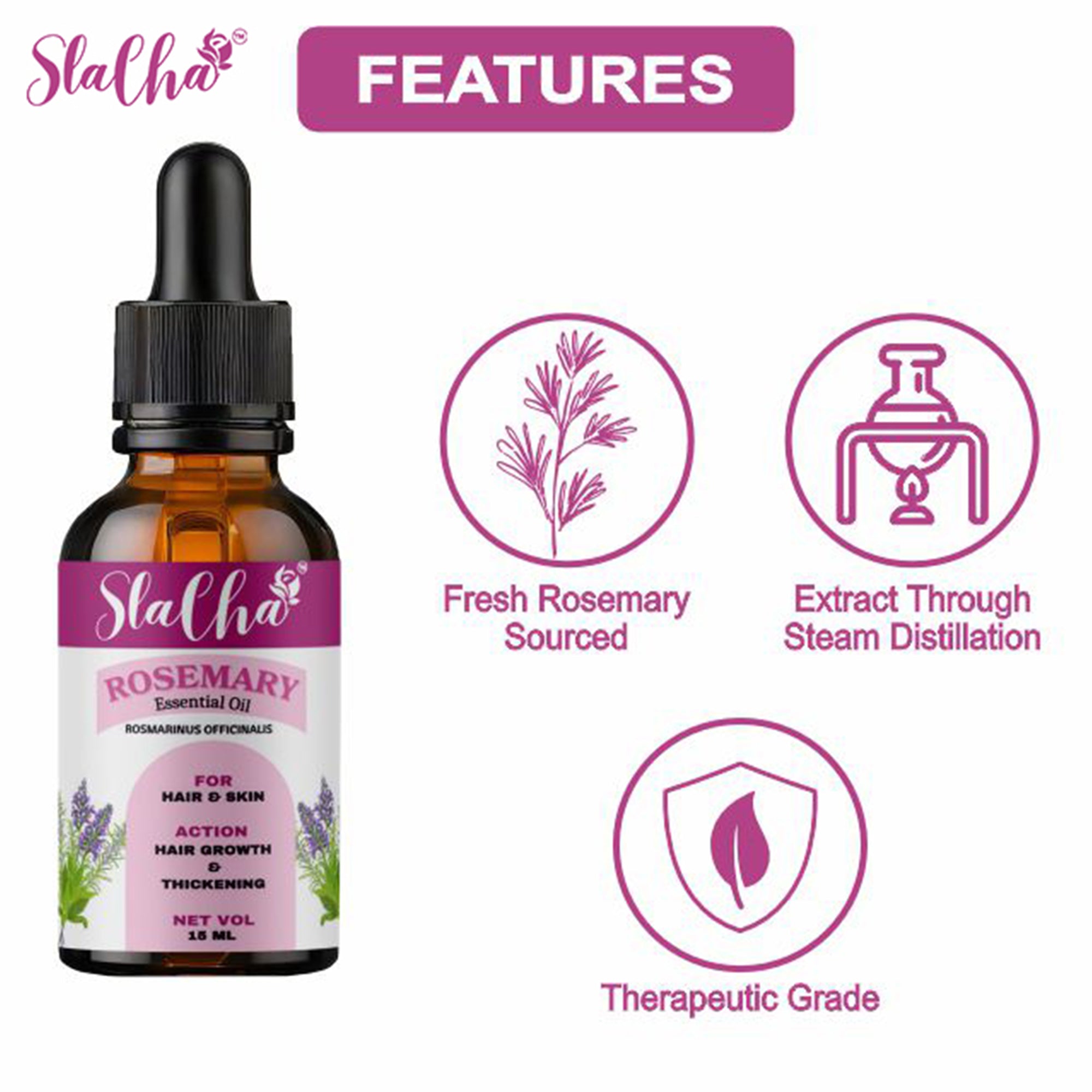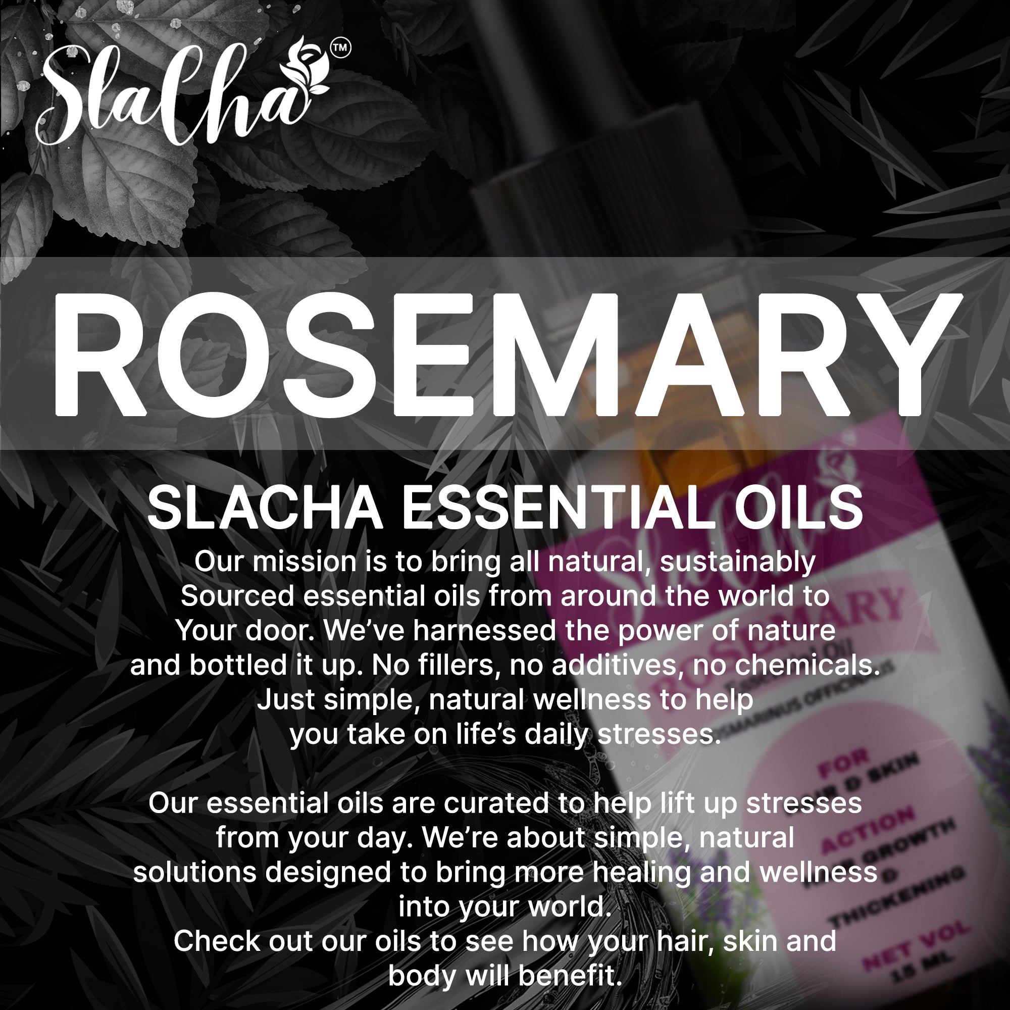 Slacha Rosemary Essential Oil | 100% Pure & Natural | Steam Distilled | For Hair Growth, Skin Care & Relaxation | 15ML (BUY 1 GET 1 FREE)