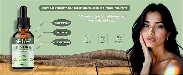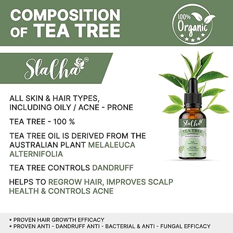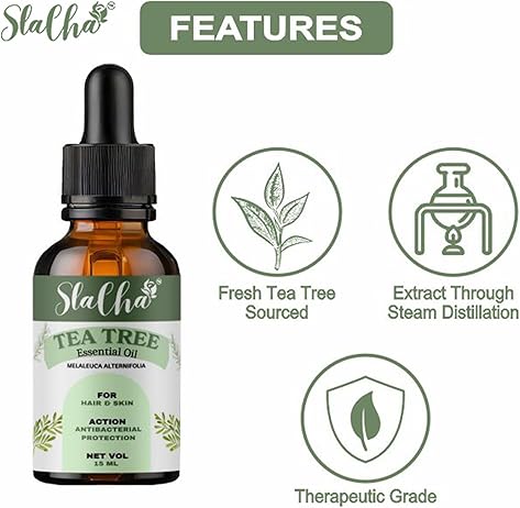 Slacha Tea Tree Essential Oil | 100% Pure & Natural | Steam Distilled | For Hair, Skin & Relaxation | 15ML (BUY 1 GET 1 FREE)