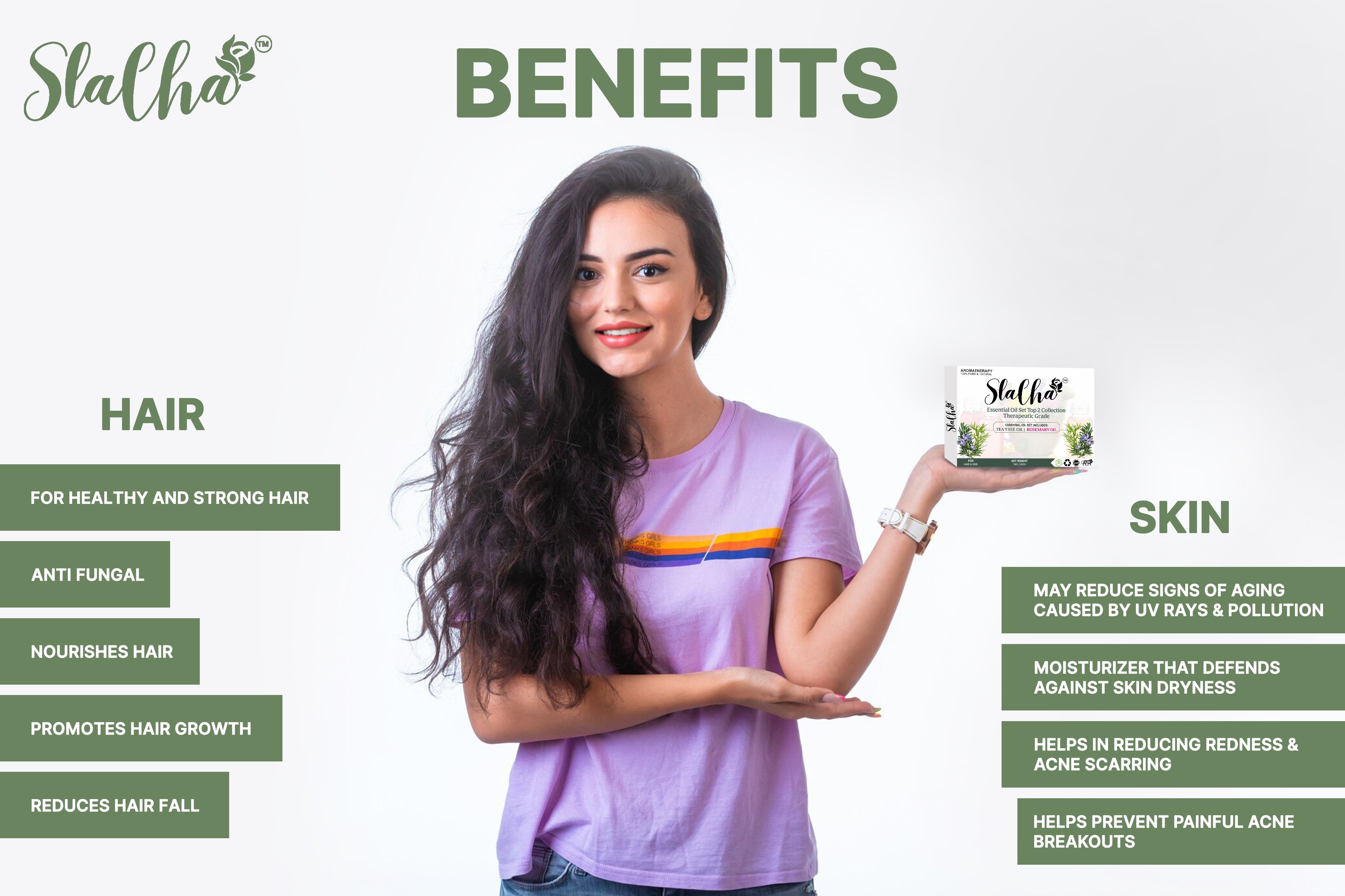 - Acne & Skin Benefits: Tea tree oil helps fight acne, blemishes, and oily skin